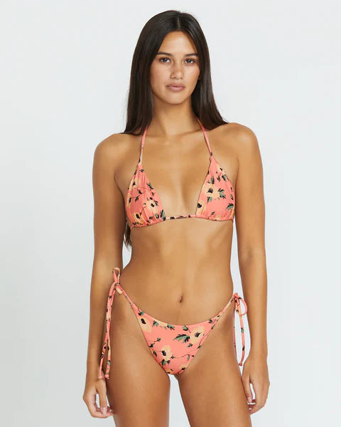 Step out on sunny days and bloom boldly. Featuring a vibrant poppy flower print, this bikini top is designed with an adjustable halter slide triangle fit and removable cups, offering the perfect blend of comfort and style.
