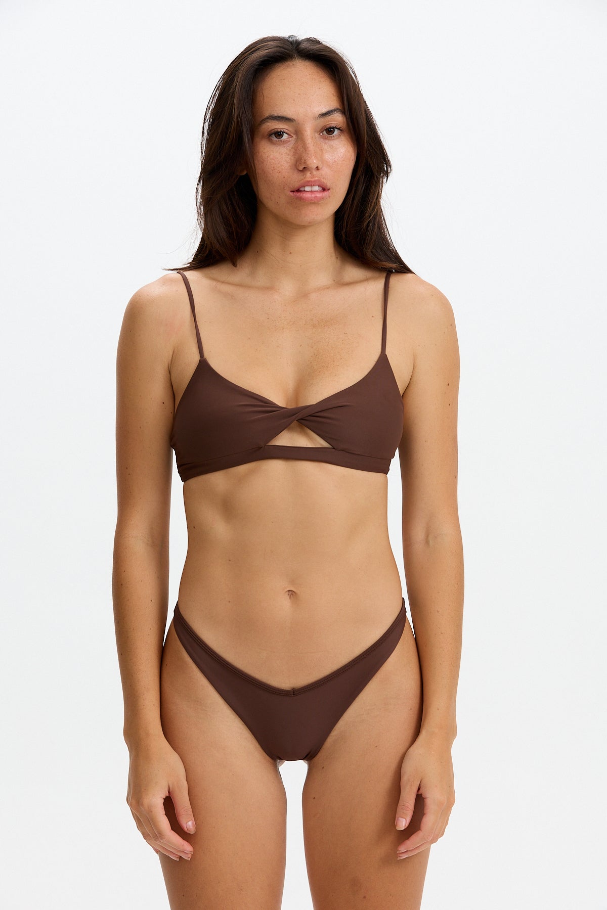 A modern twist on a 90s high hip bikini bottoms. These modest skimpy cut bottoms hug you in all the right places, while giving you an hourglass figure. Don't forget about the plunging V shaped front and back seamed detail, these bottoms are a returning favorite.